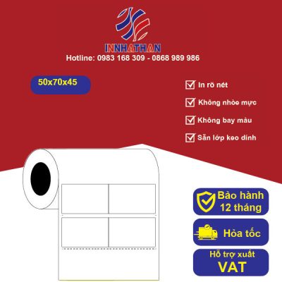 Tem decal giấy 50x50mmx45m (2 tem/ hàng)